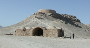 J’ai appris des choses enrichissantes et étonnantes sur la religion à l’école et à la maison mais aussi quand je suis allé en Iran en novembre 2003, choses que je voudrais partager avec vous, amis de ce blogue, avant la grande Fête. C’est à Yazd, à quelques centaines de km au sud de Téhéran qu’est née il y a plusieurs millénaires, la plus  ancienne religion du monde encore vivante, le Zoroastrisme, ou Mazdéisme, la religion des Mages. À Yazd, les Tours du silence se trouvent en banlieue sur des tertres. (cliquez sur les photos pour les agrandir)