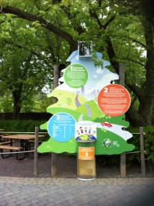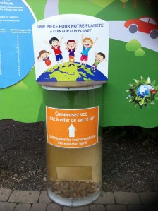 Une lectrice de ce blogue a pris les photos qui illustrent ce billet au cours d’une visite au Zoo de Granby – cliquez pour agrandir- . On offre au visiteur de compenser son péché carbonique au moyen d’un don qu’il dépose dans le tronc du carbone boréal, tout comme il y avait autrefois à l’entrée de l’église,  le tronc des pauvres et celui pour l’achèvement de la restauration de l’église. Il y avait aussi l’ange-merci, qui inclinait la tête quand vous déposiez une pièce. Admirez donc le tronc de ces chercheurs astucieux: une image stylisée d’une épinette qu’on vous offre de planter pour racheter votre péché carbonique. Une indulgence pas tellement bon marché – si vous consultez leur tableau des tarifs- mais qui vous épargnera des années de purgatoire environnemental, et surtout… vous donnera bonne conscience, cette paix intérieure qu’on ressentait en sortant du confessionnal, la paix de l’ame. Ça s’appelle maintenant la paix verte. Selon la distance sur laquelle vous aurez conduit votre voiture pour vous rendre au zoo, la faute à racheter a son prix. Le zoo verse lui-même son aumône généreuse de 4 200$ par année soi-disant pour compenser les déplacements automobiles de ses employés.