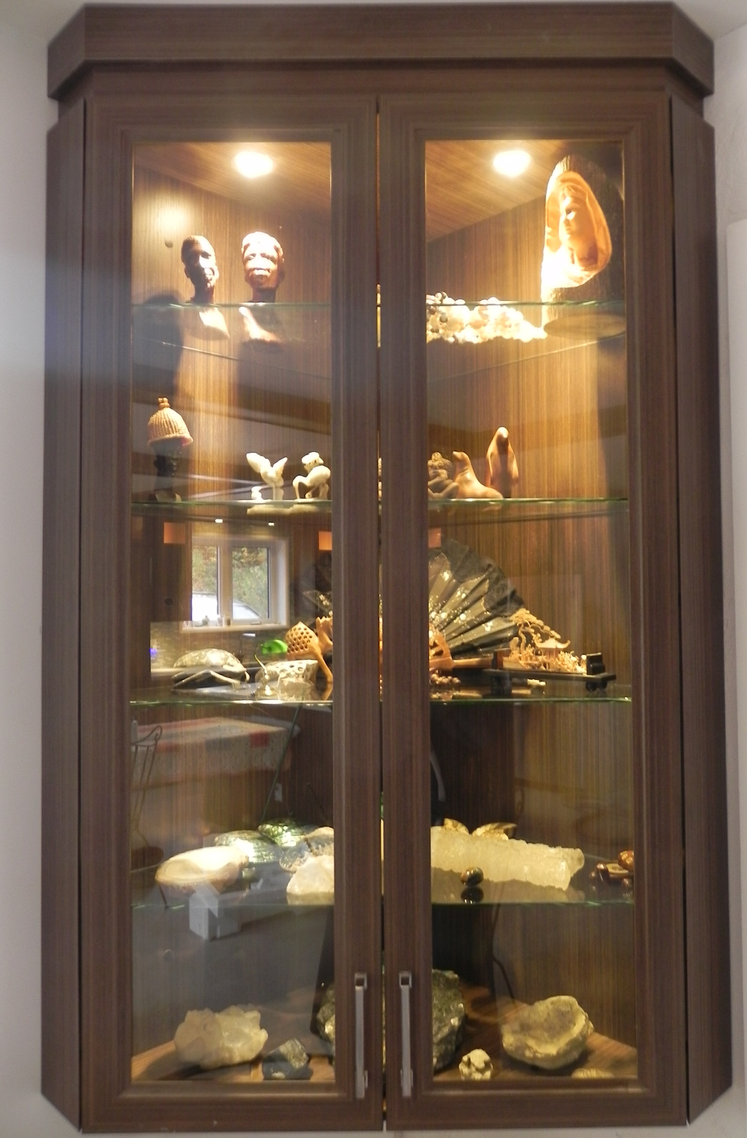cabinetMon chantier de rénovations s’éternise. Mais ça achève… Dans un coin, ma designer, sensible aux objets qu’elle a vus éparpillés dans ma maison, tous souvenirs de voyages, m’a conseillé d’y consacrer un cabinet de coin.