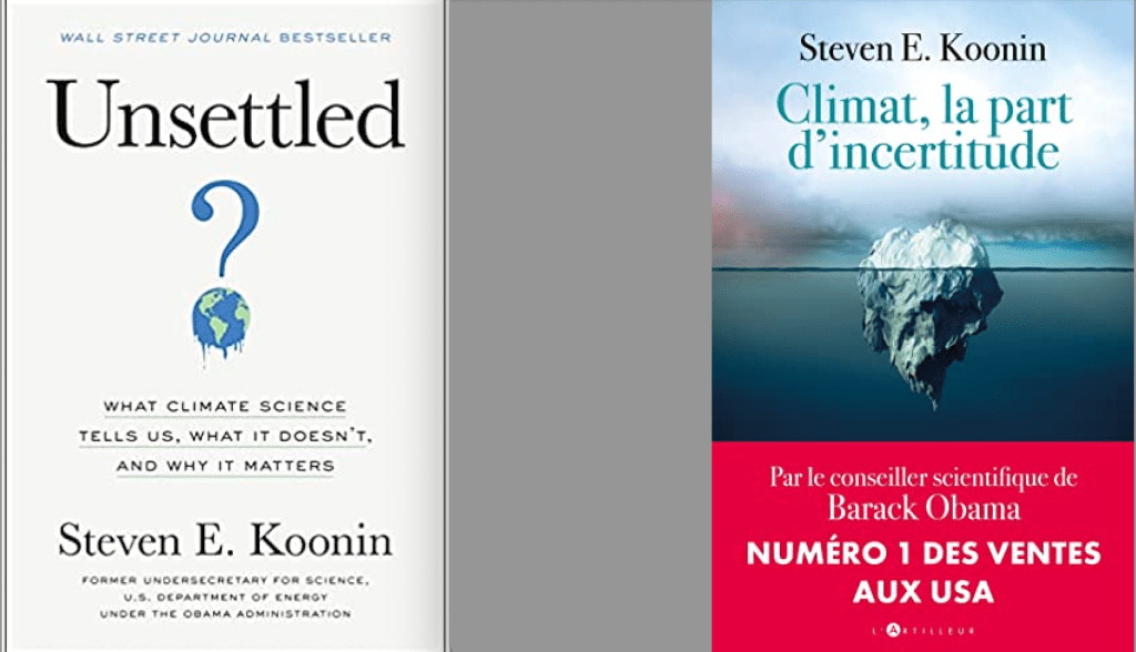 Constatant l’impossibilité de débats rigoureux sur la question climatique, Koonin développa de sérieux doutes sur les thèses du GIEC. Il exprima publiquement ces doutes dans des articles du Wall Street Journal puis du New York Times, articles qui déclenchèrent des réactions violentes. C’est alors qu’il entreprit la rédaction de son best seller « Unsettled ? » en avril 2021, lequel a largement contribué à convaincre plus de la moitié des Américains qu’il n’y a pas d’urgence climatique.