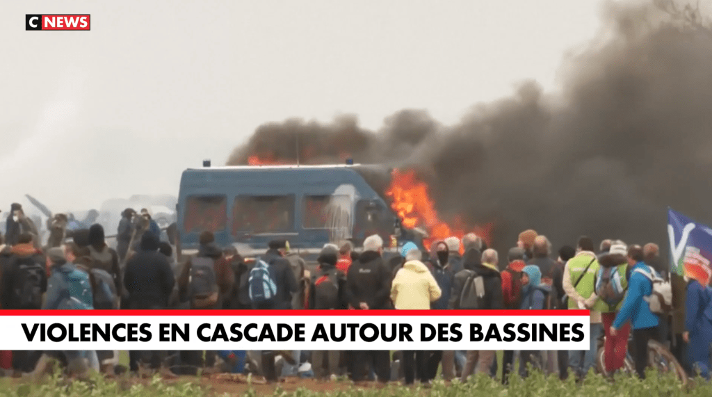 Des images d’une rare violence tournent en boucle sur les télévisions françaises. On projette d’aménager 16 méga-bassines afin de procurer l’eau nécessaire à l’irrigation des terres agricoles de plusieurs centaines d’agriculteurs de la région des Deux-Sèvres. Il s’agit de pomper de l’eau de la nappe phréatique pendant l’hiver et de l’accumuler dans des bassins de rétention afin d’irriguer les terres agricoles pendant l’été. Cela devrait permettre d’augmenter considérablement la production locale d’une agriculture présentement trop dépendante des importations.